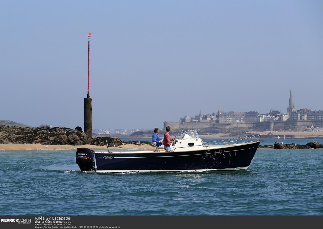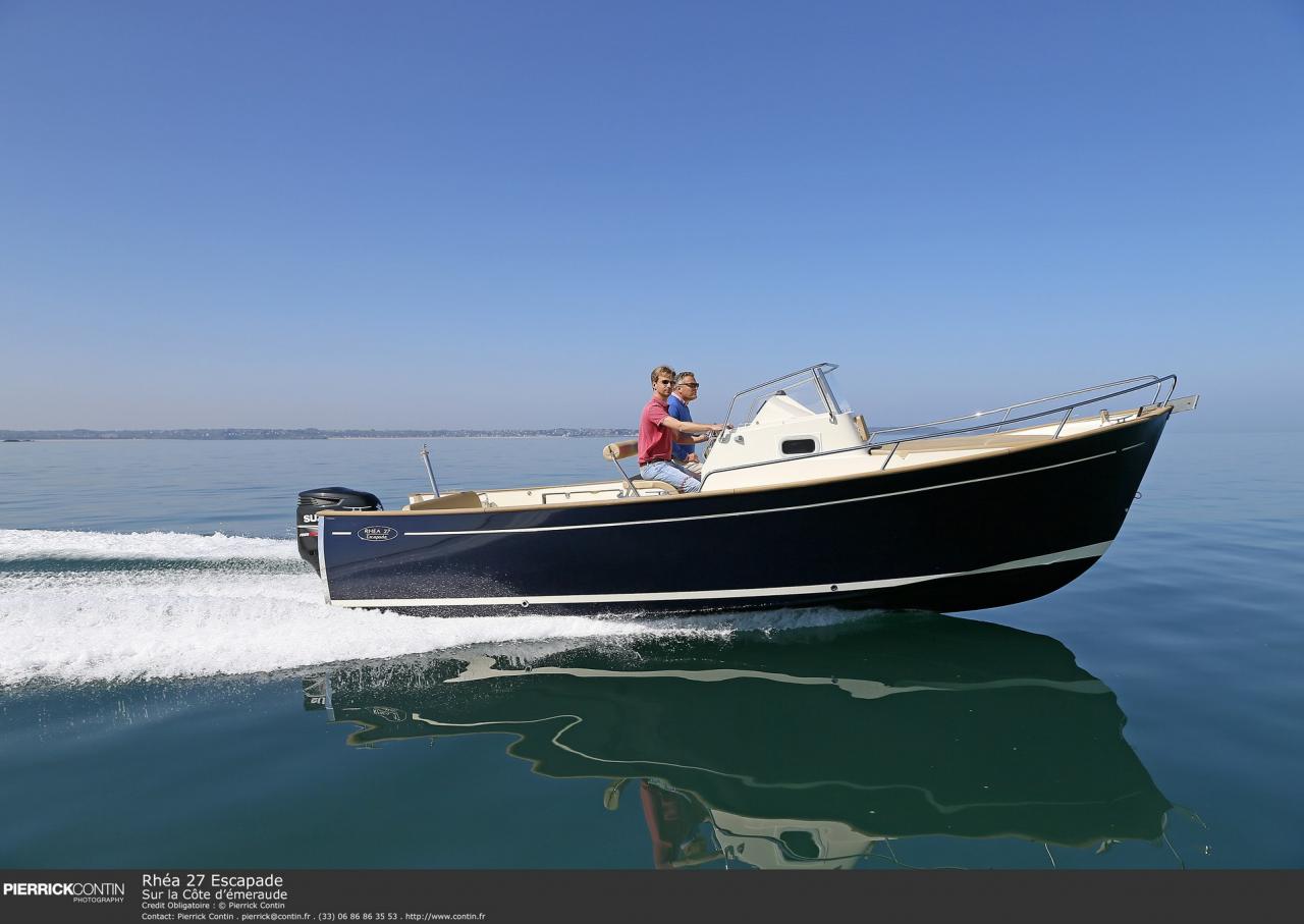 Le Rhéa 27 Escapade est un bateau polyvalent conçu pour répondre aux besoins des amateurs de navigation les plus exigeants. Doté d'un design élégant, il allie un look moderne à des touches rétro pour une esthétique distinctive. Que ce soit à quai ou en pleine mer, il ne manque jamais d'attirer l'attention avec son caractère unique.