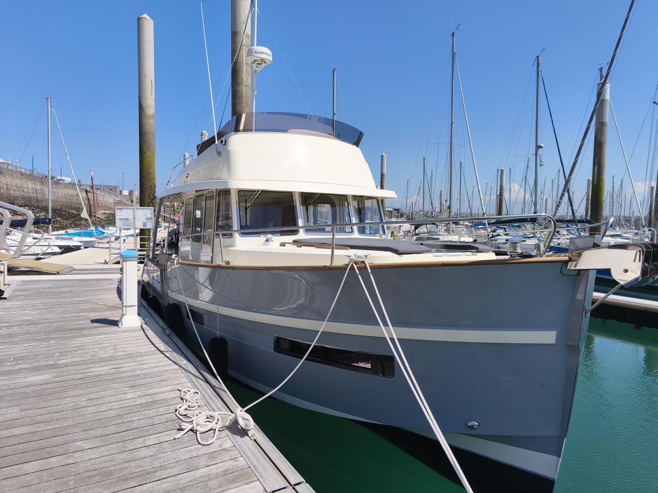 RHEA 34 Trawler Fly motorisé en Volvo D6 440 cv. Un trawler haut de gamme, pensé pour la croisière au long cours comme pour les sorties côtières.