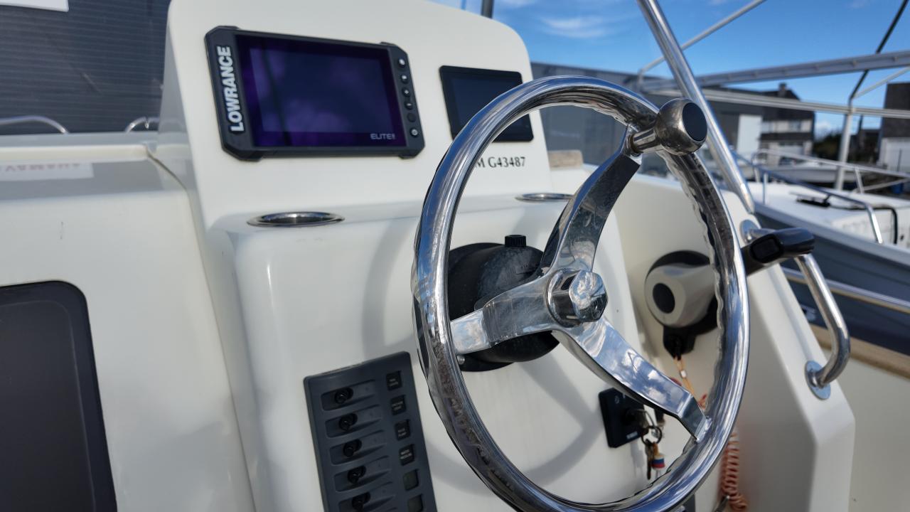 Ce Rhea 23 Open millésime 2022, dessiné par Joubert-Nivelt et imaginé par Bertrand Danglade, incarne à la perfection l'esprit Rhea : un bateau à moteur robuste, bien construit, confortable, et taillé pour la balade comme pour les journées de pêche en Bretagne.